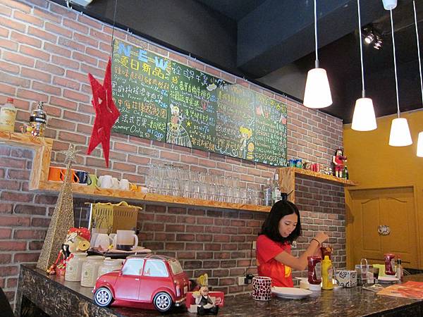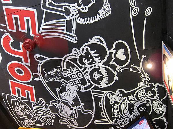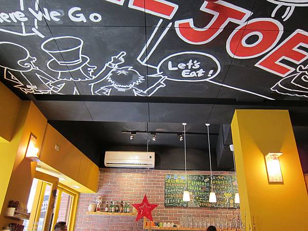 天花板就貼著畫滿可愛圖案,寫的大大"TABLE JOE"的黑板
