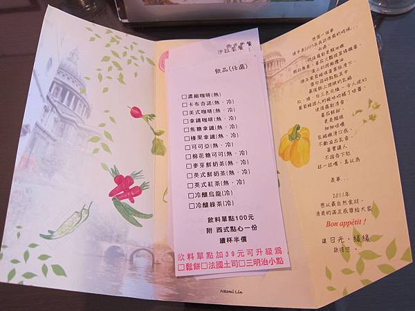 大致上都是有果汁/今日湯2選1,沙拉,主餐跟飲料