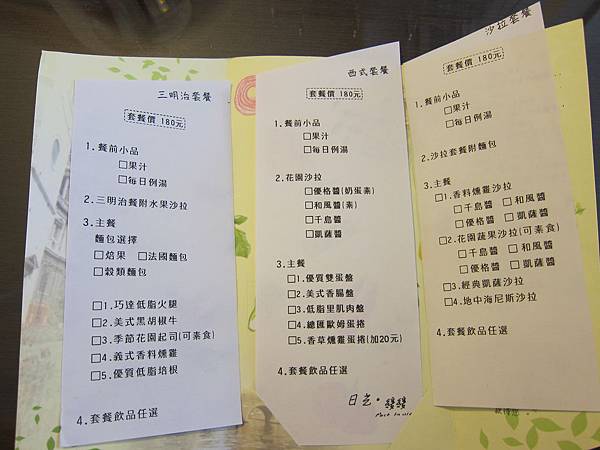 內容有三明治套餐,沙拉套餐跟西式套餐三種