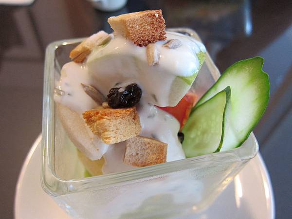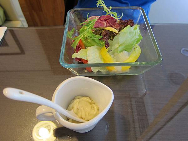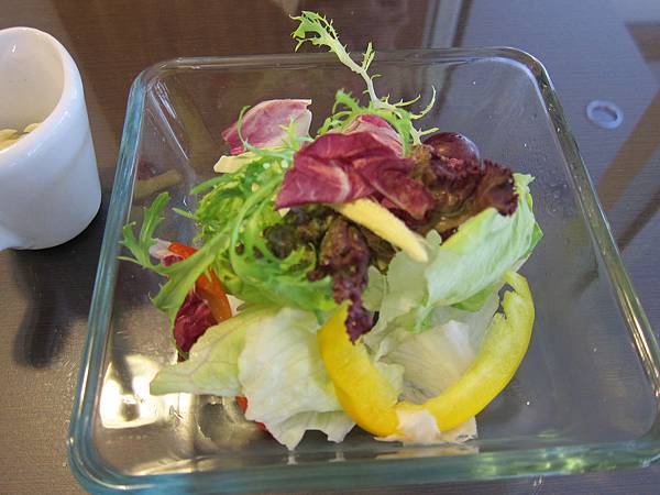 這是西式套餐附的花園沙拉,有4種醬可以選,這是凱薩醬