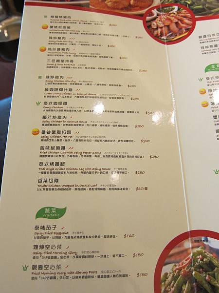 綠咖哩椰汁雞,檸檬烤豬肉,風味椒麻雞,辣炒豬肉