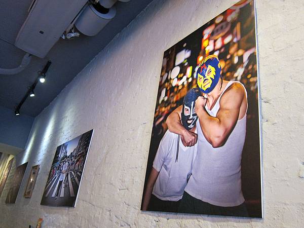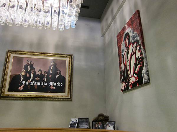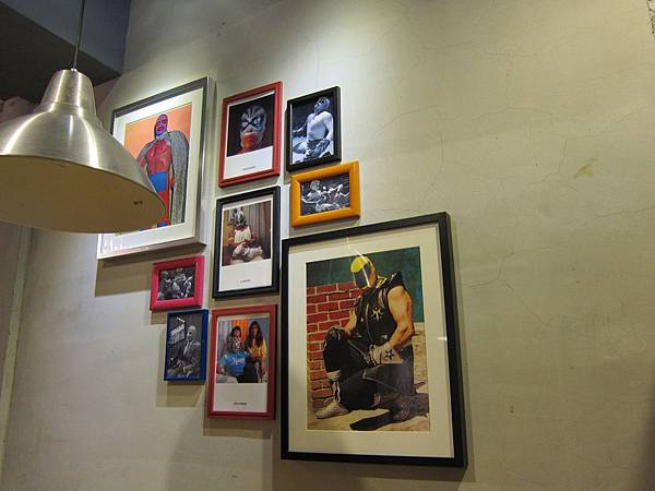 牆壁上擺滿了各式各樣墨西哥摔角的相片跟圖片