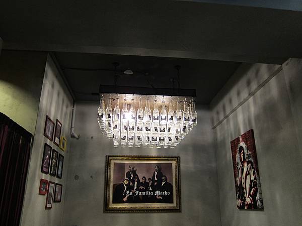 裡面有一個酒瓶做成的大吊燈,很特別~