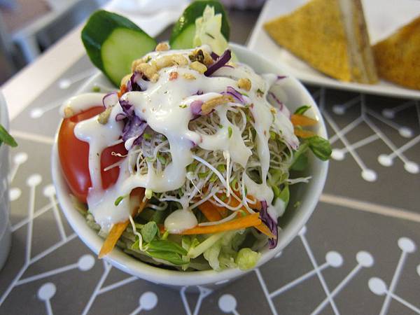 三明治吃一半才上來的沙拉...出餐順序真詭異