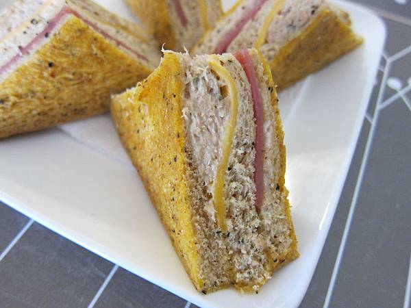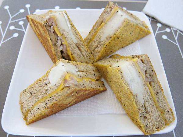 裡面夾的是火腿,起司跟鮪魚沙拉