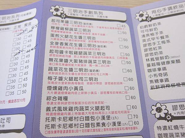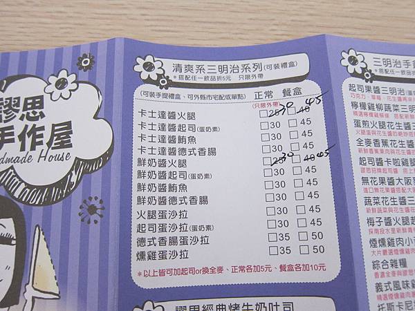 主要分成清爽系三明治,謬思經典考牛奶吐司跟三明治手創系列