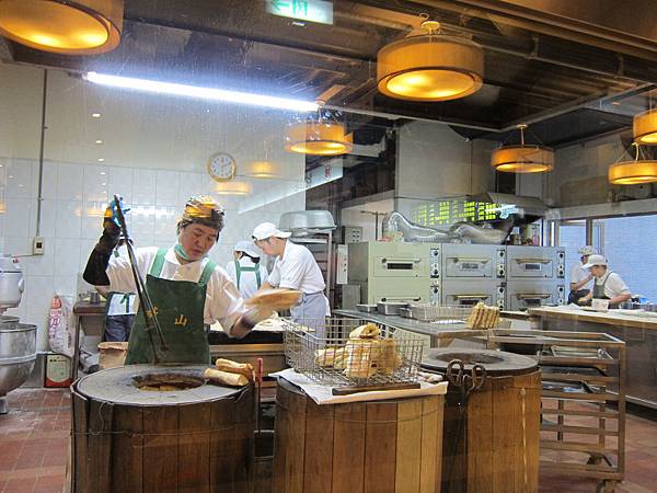 看著他把剛烤好的燒餅從爐灶裡面拿出來...看起來好好吃~
