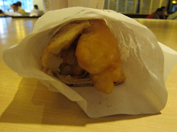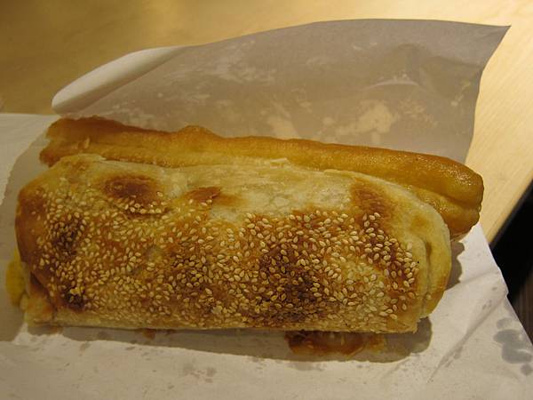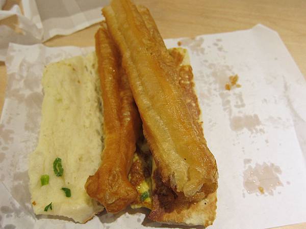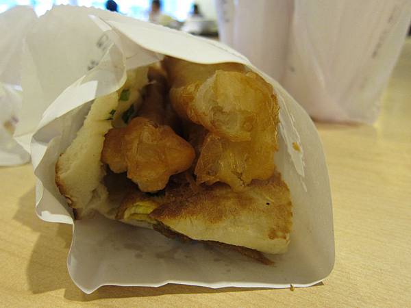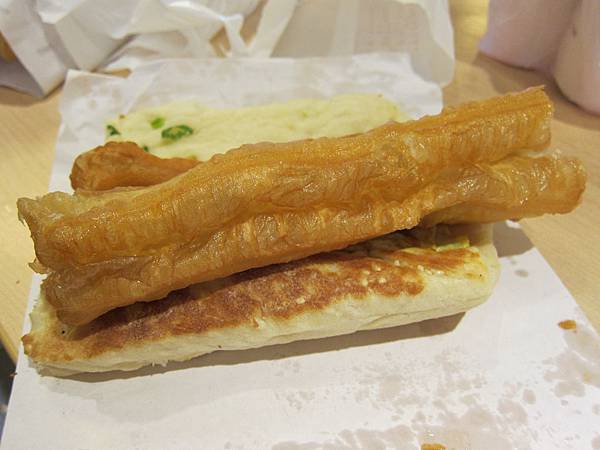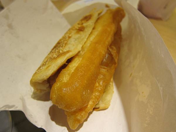我們外帶了一個厚餅夾蛋夾油條跟一個薄餅夾蛋夾油條