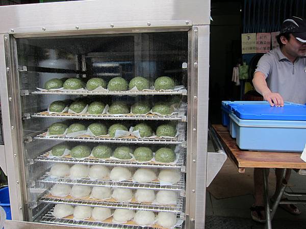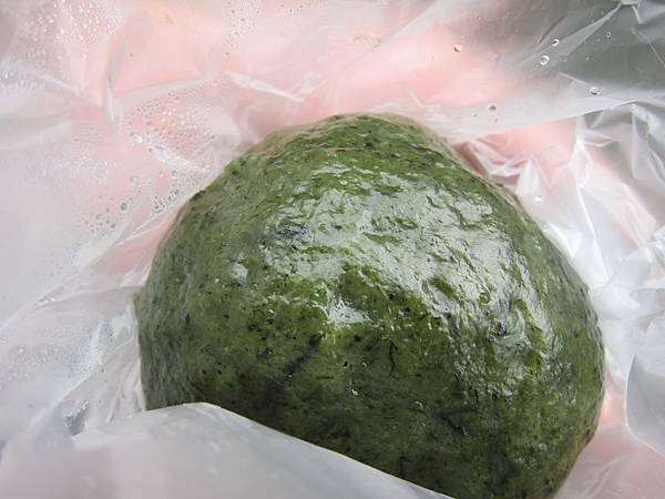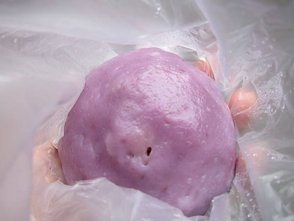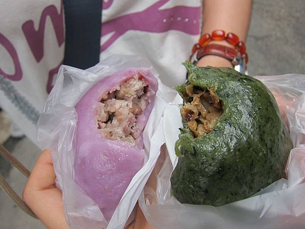 我們買了一個紫色(山藥皮+芋頭餡)跟兩個綠色(艾草皮+菜脯餡)