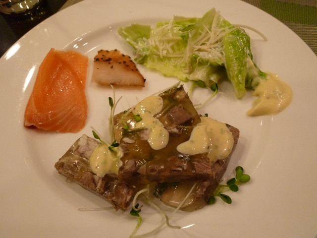 燻鮭魚,凱隡沙拉跟牛肉凍