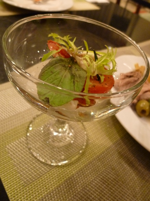 蕃茄配上起司(他沒有寫是哪一種起司),在淋上酸酸的沙拉醬汁