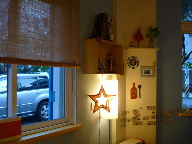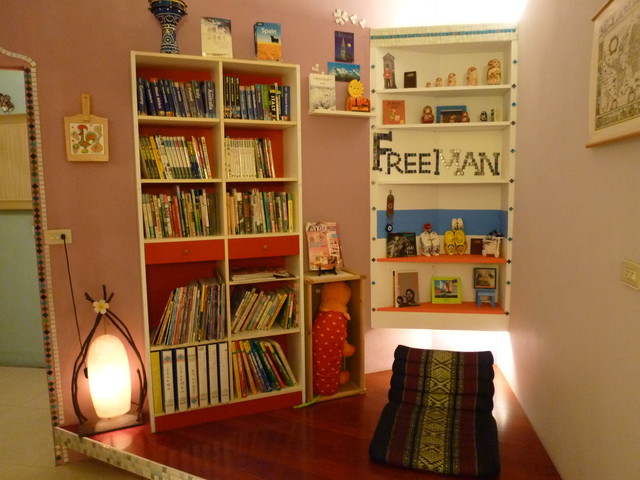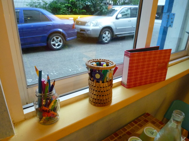 旁邊的小窗檯擺了活頁簿跟彩色鉛筆