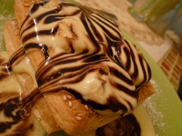 看看那滿出來奶油跟巧克力阿...光看就覺得會胖死:P