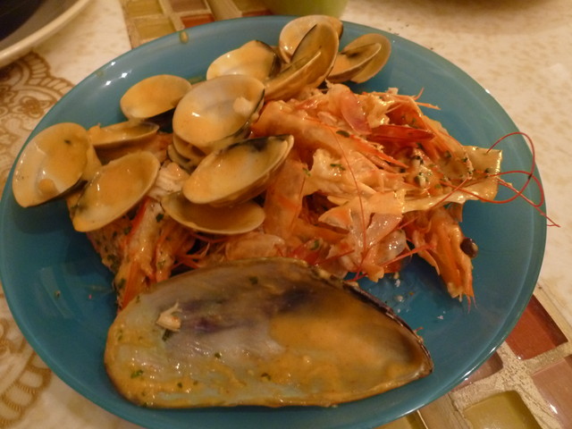 滿滿的海鮮鋪在上面~有蝦子,扇貝,蛤犡,花枝等等