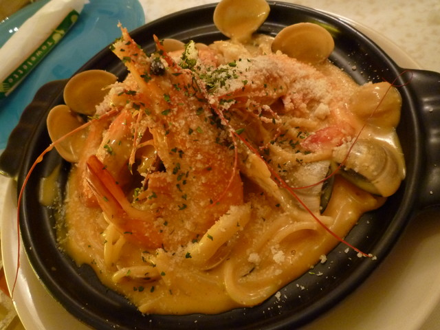 我點了法國雞氣死飯,小牛點辣奶奶的海鮮義大利麵