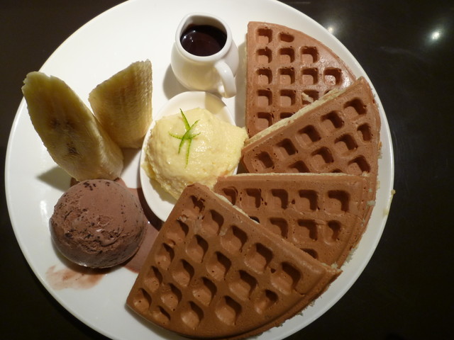 其實第一次吃已經快兩年前了吧~好像是點抹茶紅豆冰淇淋鬆餅跟燻雞三明治