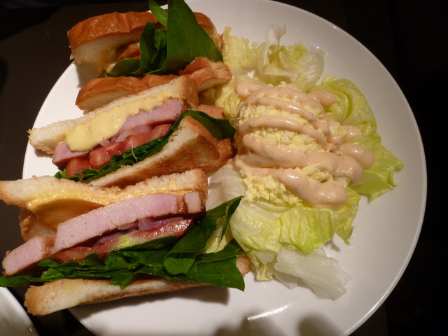 三明治的麵包不是用一般的吐司,而且是切成3塊(話說我忘記這種是什麼麵包)